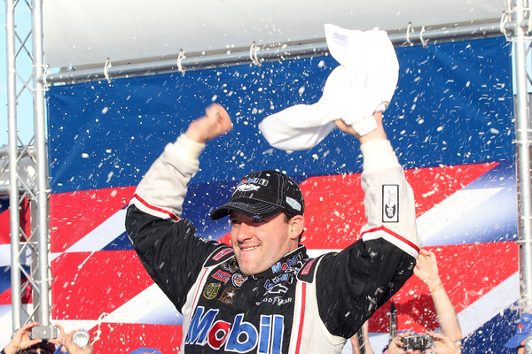 Stewart went around for the lead and the win, as Greg Biffle, running second at that moment, also ran out, giving that runner-up spot to fellow player racer Brad Keselowski.