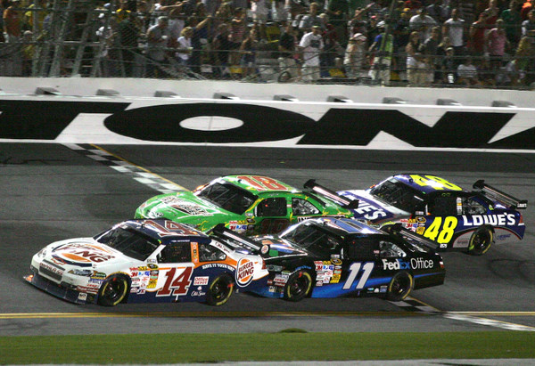 Tony Stewart and Denny Hamlin, teammates the last few years, along with Busch, were dominating the three-hour race, played out in front of a nice, if relatively modest crowd of about 120,000 at Daytona International Speedway. Then Busch, with a push from Hamlin, made a pass to the outside of Stewart for the lead as they headed toward the white flag.