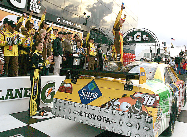 Kyle Busch celebrates in victory lane after winning the NASCAR Sprint Cup series Gatorade Duel 2 at Daytona International Speedway (Photo by Jason Smith/Getty Images for NASCAR)