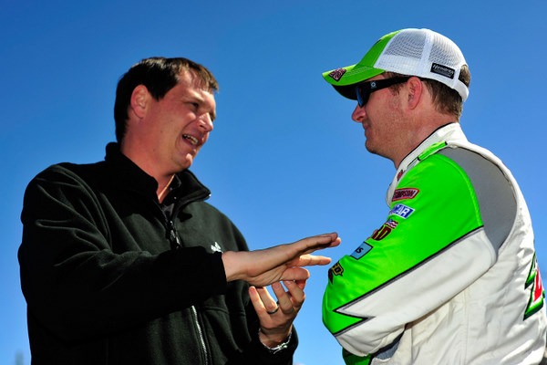 Steve Letarte (L), explaining things to Dale Earnhardt Jr. (Photo: Getty Images for NASCAR)