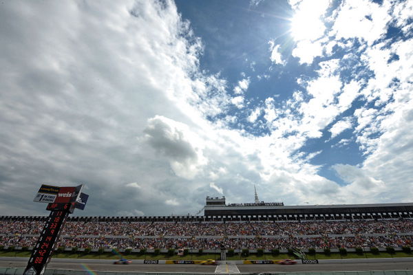 Strange, violent weather, including heavy rain and a tornado watch, marred the early afternoon and delayed the start of the Pocono 500. (Photo: Getty Images for NASCAR)