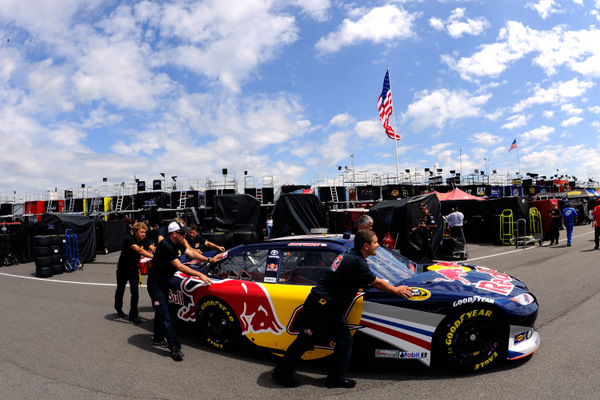 As far as Junior getting a 427 through inspection, the extra weight of the big block, along with the fact the the tires can barely handle the torque of the 355 engine at many tracks would probably not produce an advantage (Not to mention the fact that the 427 would get worse gas mileage, killing any chances for victory). Isn't there even a minimum engine size, at least at the plate tracks, because they were worried that a smaller engine might have an advantage?