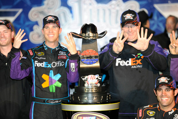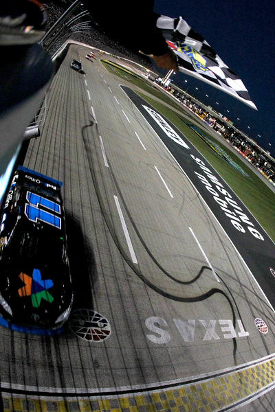 Denny Hamlin at the finish line, winning Sunday's Texas 500 in a thriller over Matt Kenseth...on a wild day in the wild, wild West (Photo: Getty Images for NASCAR)