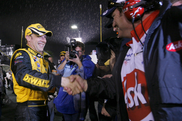 Gentlemen, start your marketing! Daytona 500 winner Matt Kenseth gets congrats from crew chief Todd Parrott (Photo: autostock)