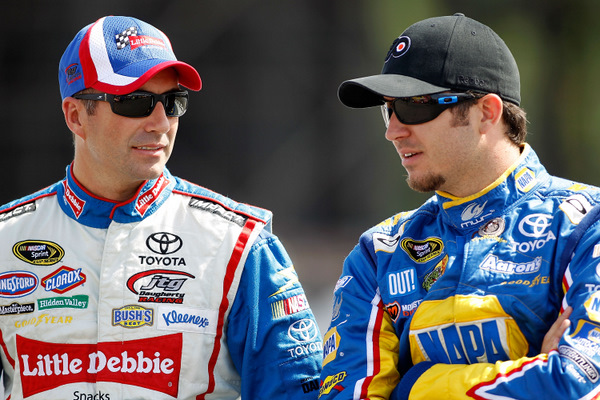 Marcos Ambrose (L), with Martin Truex Jr. Ambrose is one of the sport's fastest road racers....but he's been quiet so far this spring...amid rumors Ford might be ready to make a run at him and bring him back to that camp (Photo: Getty Images for NASCAR)