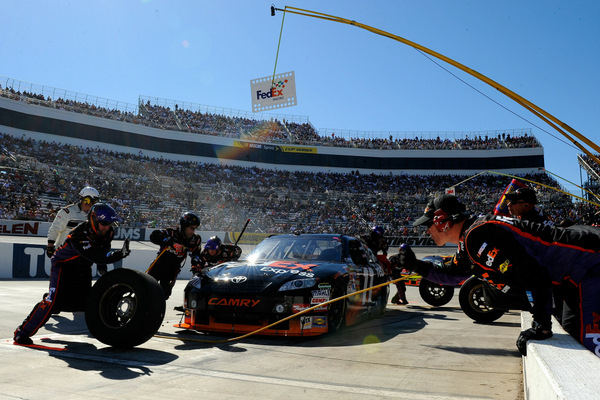 Mike Ford's crew works over Denny Hamlin's car during Sunday's Martinsville 500 (Photo: Getty Images for NASCAR)
