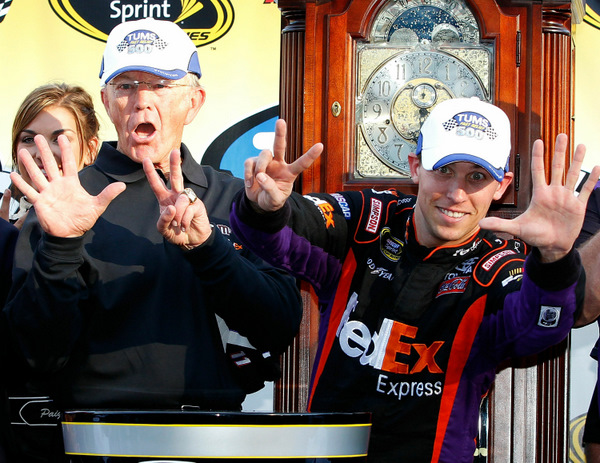 How many wins now? Team owner Joe Gibbs (L) senses Denny Hamlin may give his first NASCAR championship since Tony Stewart in 2005 (Photo: Getty Images for NASCAR)