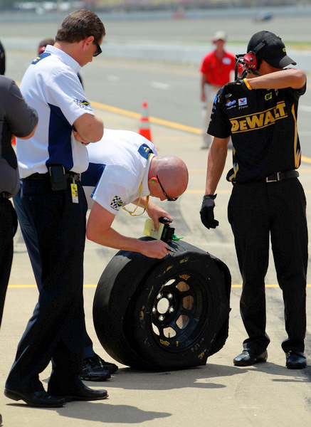 Matt Kenseth's left-front tire flat. Teammate Carl Edwards says he's worried. Goodyear engineers say the problem is teams are running low air pressure in order to help the cars turn in the corners. (Photo: Getty Images for NASCAR)