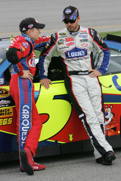 Mark Martin (L) and teammate Jimmie Johnson: Front row for Sunday's Talladega 500...with Martin needing to gain points on Johnson in the Sprint Cup title chase (Photo: Getty Images for NASCAR)