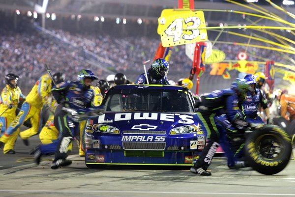 To a driver, sometimes all the frantic action on a 12-second pit stop is just a blur (Photo: Getty Images for NASCAR)