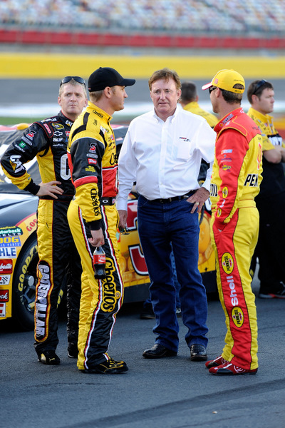 Car owner Richard Childress (white shirt), surrounded his three championship contending drivers, Jeff Burton, Clint Bowyer and Kevin Harvick (Photo: Getty Images for NASCAR)