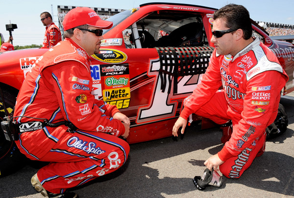 Crew chief Darian Grubb (L) has been cool and confident all season, and he's a remarkable job his first year with Tony Stewart (Photo: Getty Images for NASCAR)