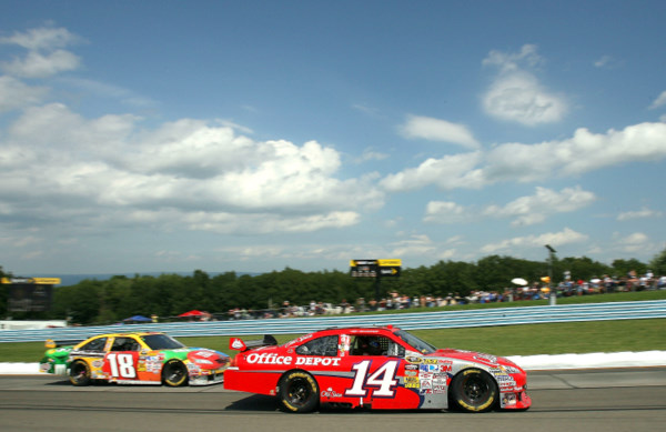 Monday's weather was just fine at the Glen, though rain loomed on the horizon late and there were a few late sprinkles, after the stretch duel between winner Tony Stewart (14) and Kyle Busch. (Photo: Getty Images for NASCAR)