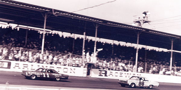 Remember when: Ned Jarrett (11) beating Buck Baker in the 1965 Southern 500. Margin of victory: two car lengths...and 14 laps (Photo: Getty Images for NASCAR)