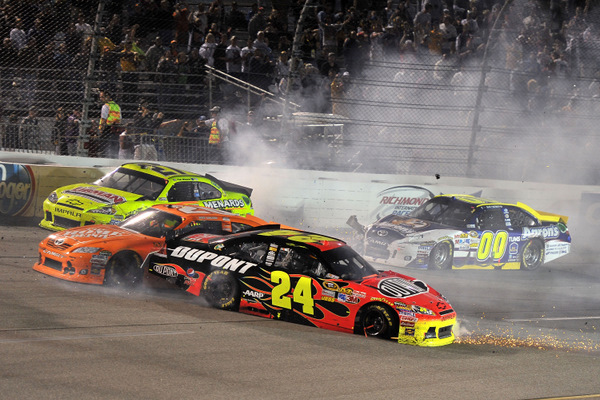 Jeff Gordon (24) is on his way into the wall, driver's side, hard. And no soft walls? NASCAR needs to get that fixed (Photo: Getty Images for NASCAR)