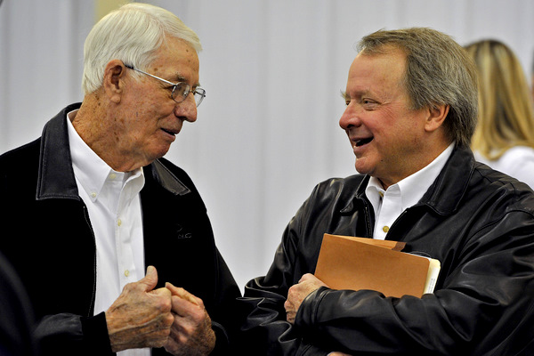 Glen Wood (L), the man who started the family empire, and Edsel Ford II, renewing his own family's support of the famous Wood brothers (Photo: Autostock)